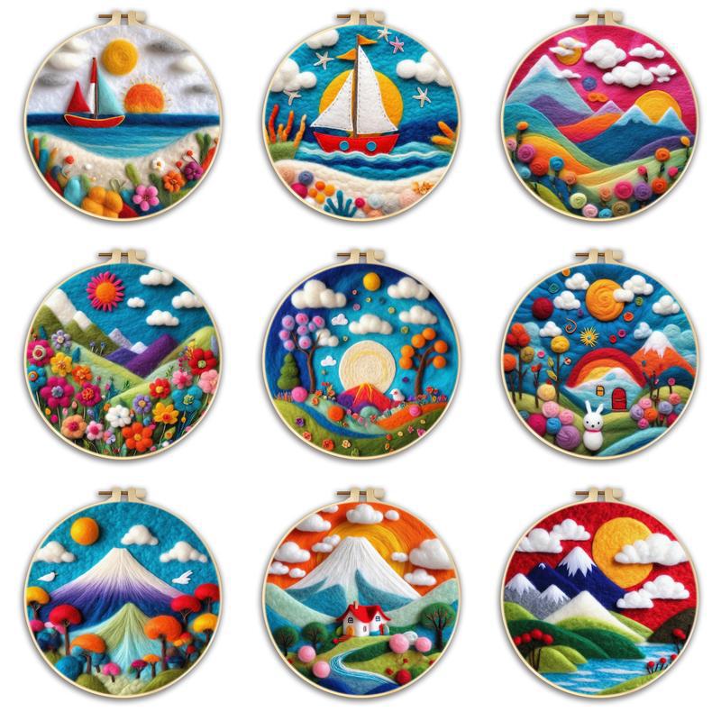 1 stk Broderisett med hav- og fjellmønster, Filtmaling DIY-gave — kjøp online billig på Joom-butikken