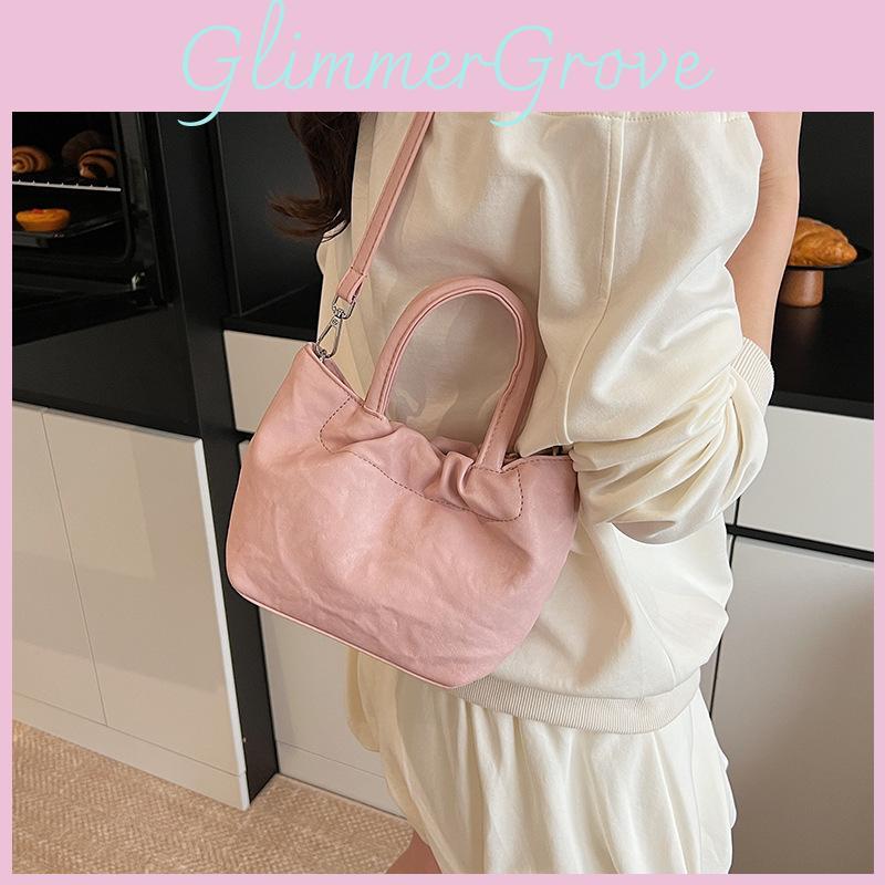 Pleated Design Pu Shoulder Bag Women Minimalist Solid Color Magnetic Closure