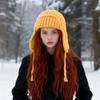 Dameflygerlue, Dameullhatt for kaldt vær, Stor hodeomkrets Fasjonabel Varm Strikket Lue