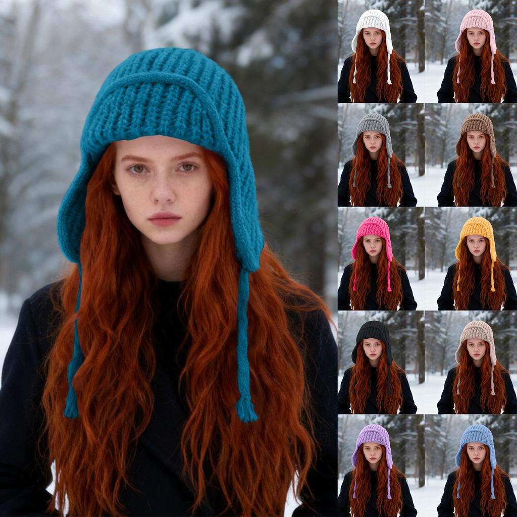 Dameflygerlue, Dameullhatt for kaldt vær, Stor hodeomkrets Fasjonabel Varm Strikket Lue — kjøp online billig på Joom-butikken