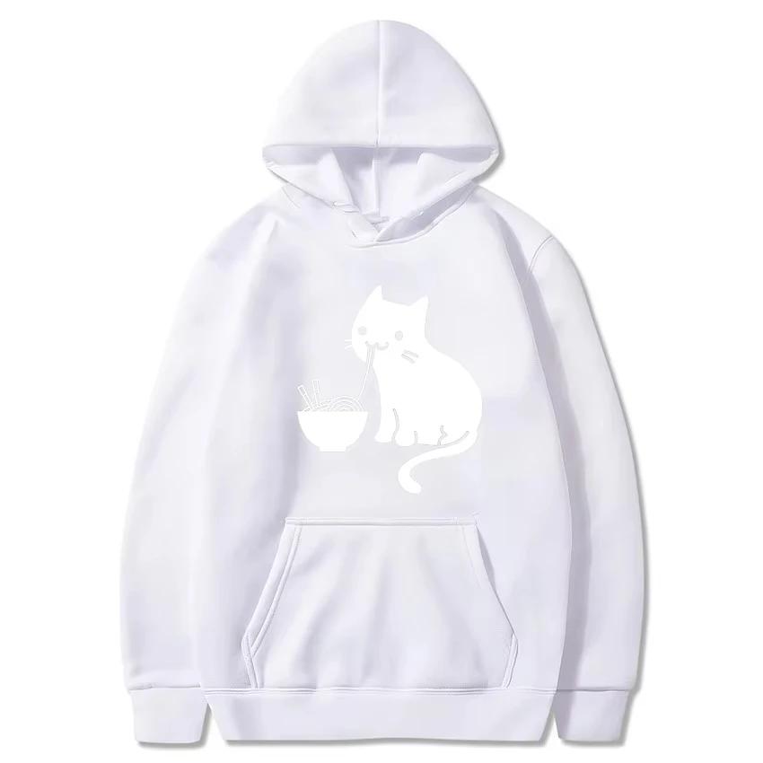 2025 Cute Cat Eating Ramen Pattern Print Pullover Hooded Sweatshirt Men's Street Outdoor Versatile Long Sleeve Comfortable — kjøp online billig på Joom-butikken