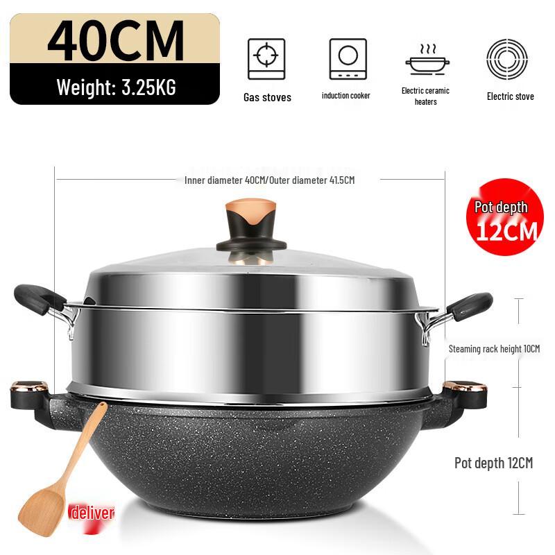 KATA Maifan Stone Non-stick Wok with Steamer, 40CM — kjøp online billig på Joom-butikken