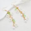 Sweet Romantic White Lily of The Valley Flower Green Leaf Pendant Earrings for Women Idyllic Classic Wedding Party Jewelry