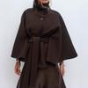 Mote Dame Snøring Ullkåper Løse Ståkrage Flaggermusermer Ermer Knapper Svarte Grå Jakker Høst Streetwear — kjøp online billig på Joom-butikken