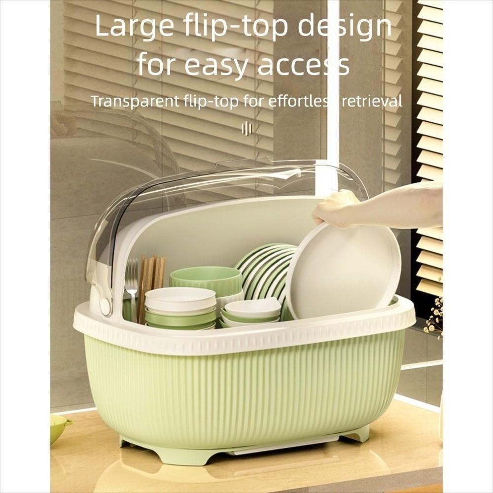Stor oppvaskstativ med takdeksel Plast Multifunksjonelt oppbevaringsstativ for servise med avrenningsbrett Skap — kjøp online billig på Joom-butikken