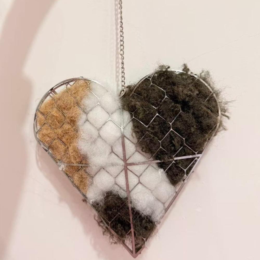 Håndlaget Alpakkafiber Fuglerede Hjerte Hjerteform Påfyllbar Fuglereder Materialholder Bomullsvatt Værbestandig