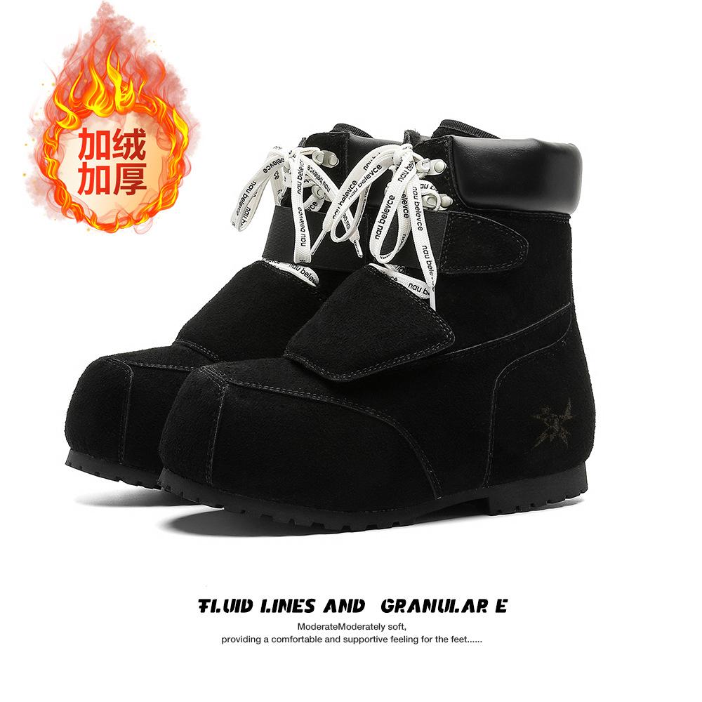 Autumn and winter couple high street niche design high-top ski boots heightening shoes velvet warm Martin boots
