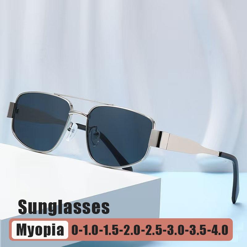 Unisex Metal Double-Bridge Myopia Sunglasses Diopter 0 To -4.0 Retro Square-Frame Brand Designer Outdoor UV-Protective Eyewear — kjøp online billig på Joom-butikken