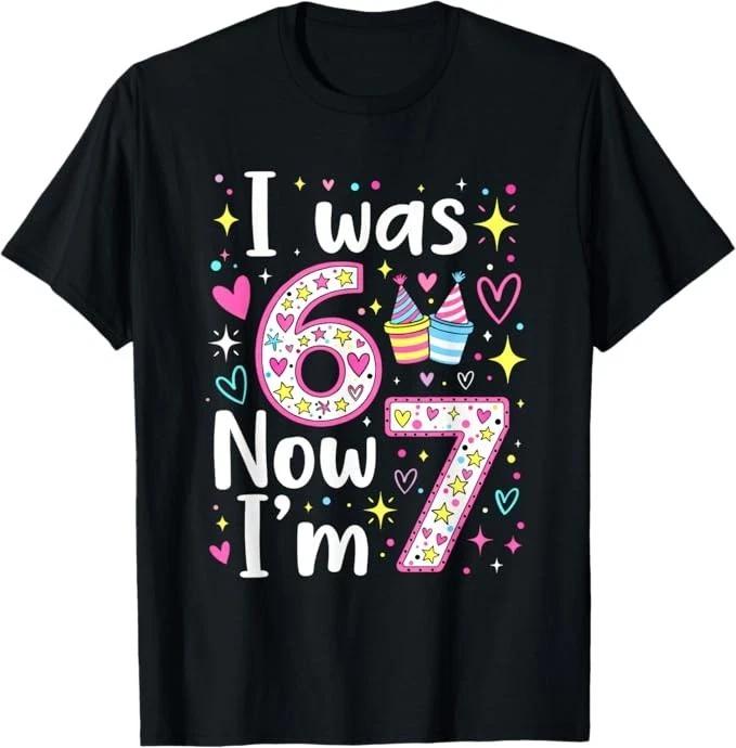 7 Years Old Birthday I was 6 Now I'm 7 6 7 Funny Kids Girls T-Shirt — kjøp online billig på Joom-butikken