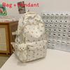 Stilfull Blomstret Ryggsekk For Jenter Nylon Skoleveske Med 14-tommers Laptop-oppbevaring