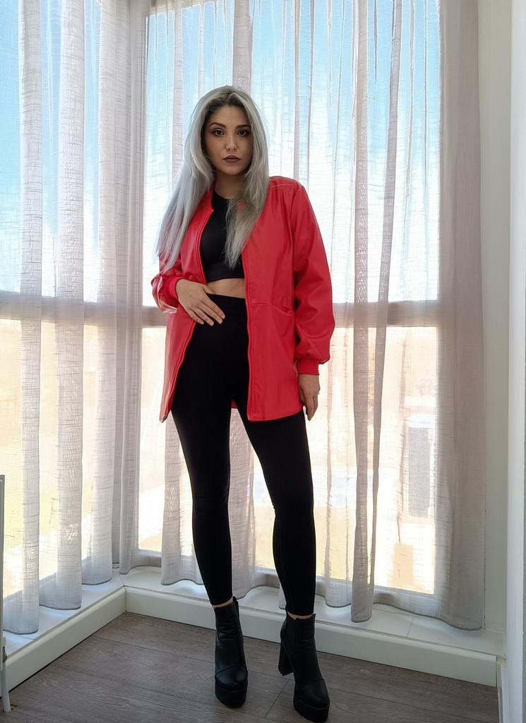 Herfst- en wintermode dames leren jas rode top zwarte jas met lange mouwen β bestel goedkoop online bij Joom webshop