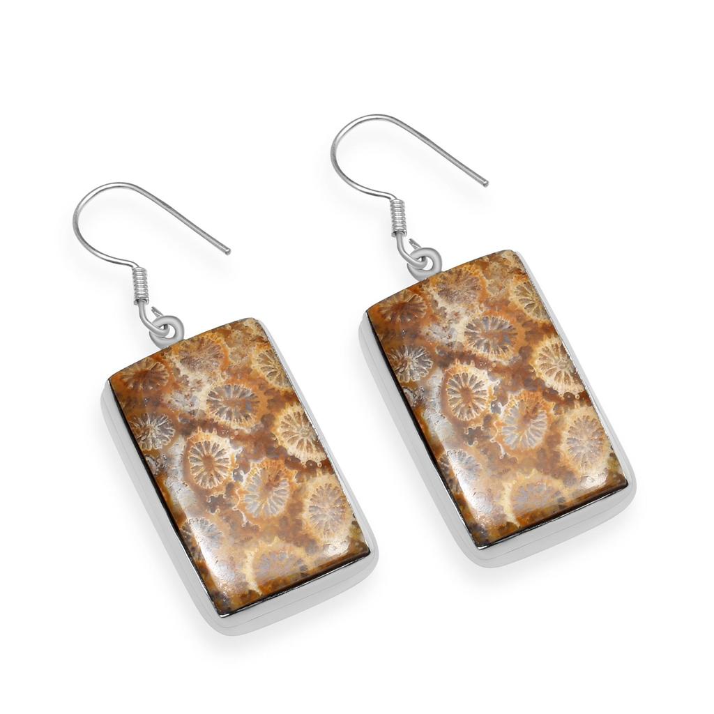 Fossiel Koraal Edelsteen 925 Sterling Zilver Handgemaakte Hangende Oorbellen voor Vrouwen & Meisjes