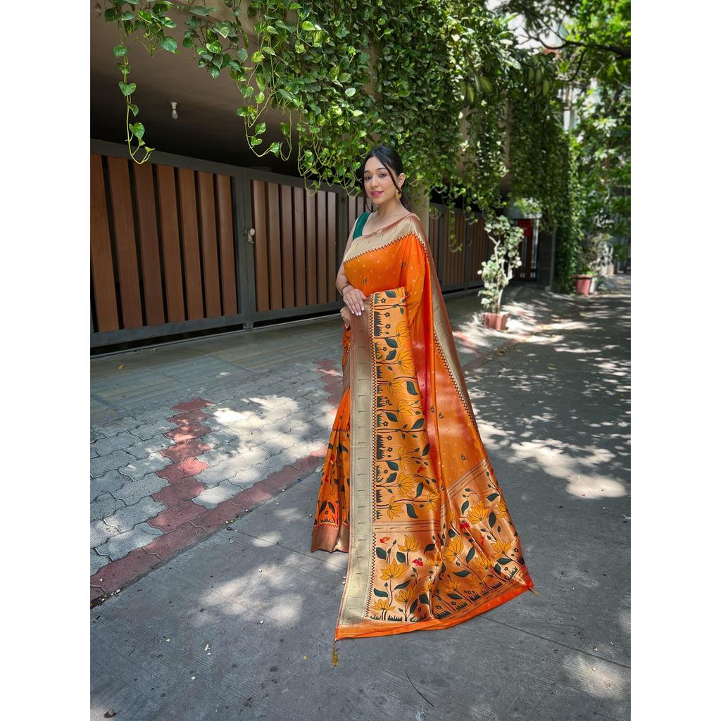 2)Saree-stof : Pure banarasi paithani zijden sari met resham geweven zari en 12 inch