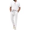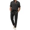 Veelzijdige Heren 2-delige Set: Geef je casual garderobe een boost met deze stijlvolle en comfortabele herenkostuumset, met een normale pasvorm die je figuur flatteert en maximaal comfort biedt.. De set bestaat uit een top met korte mouwen en een opstaande kraag en een broek met elastische tailleband, en biedt een casual maar toch verzorgde look die geschikt is voor diverse gelegenheden.