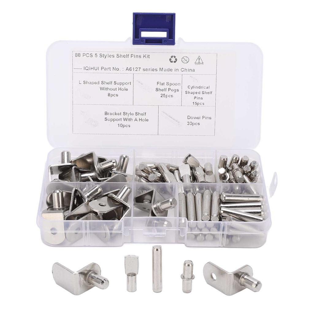 88Pcs 5 Styles Shelf Pins Kit Nickel Plated Shelf Support Pegs for RV Cabinet Bookshelf Display Cabi