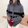 Autumn and winter new retro college loose long-sleeved sweater women's lazy wind stand-up collar striped knitted jacket