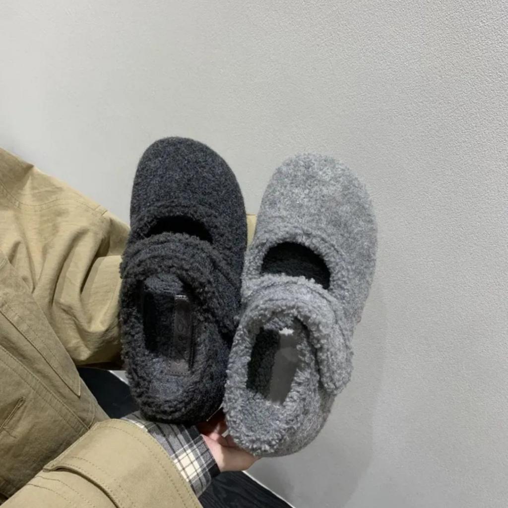 Herfst en winter met rokken, warme en fluwelen Mary Jane schoenen, pluizige schoenen, interne hoogteverhoging, enkelschoenen, katoenen schoenen, wollen zachtzoolw