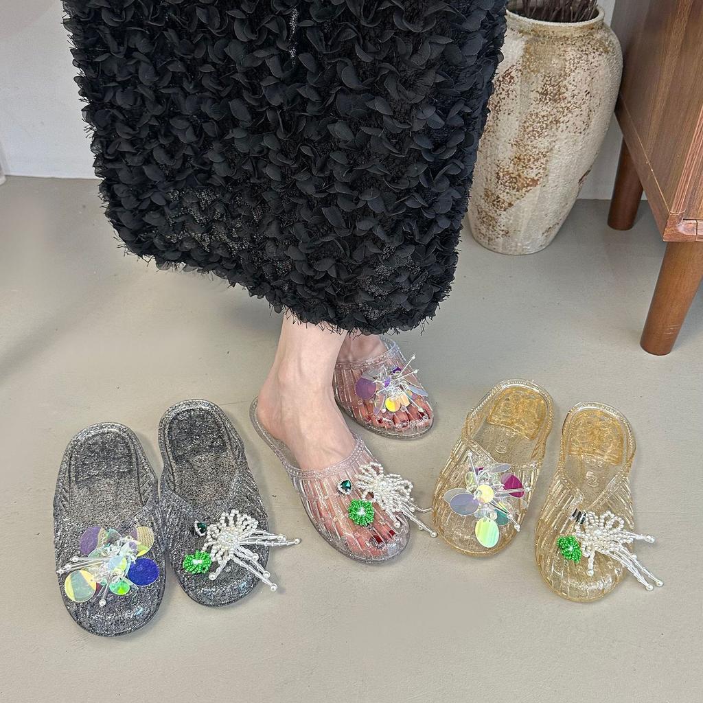Kristallen schoenen sandalen dames platte zool transparant semi-sleep bovenkleding schoenen bloem gelei schoenen zachte zool coole slippers tas hoofd bovenkleding dames