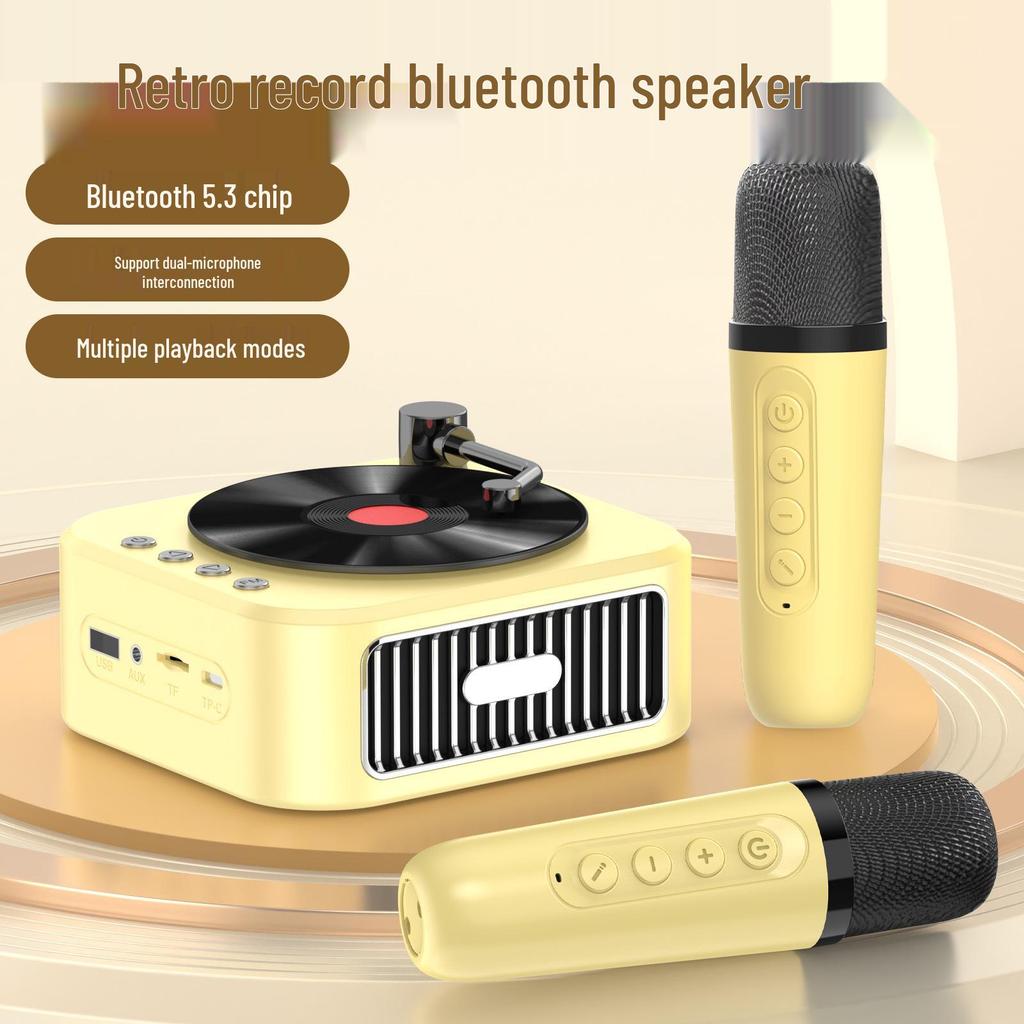 Retro Vinyl Record Player with Bluetooth Speaker & Wireless Microphone - Ultra-Small & High-Quality, Perfect Festival Gift