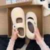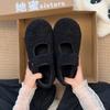 Klittenband grijze pluizige schoenen voor dames winterkleding nieuwe fluwelen enkele schoenen warme katoenen schoenen platte Mary Jane Doudou schoenen