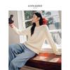 JZ ANNACAU Women's Semi-High Neck Iridescent Wool Blend Knit Sweater with Cutout — kopen online met gratis levering over de hele wereld!