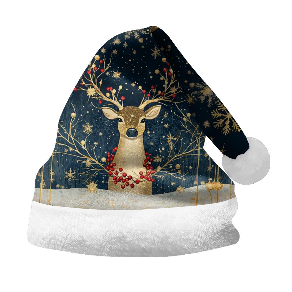 2024 Christmas Double-Sided Fleece Hat for Adults & Kids – Short Plush, Velvet, with Christmas Element Print