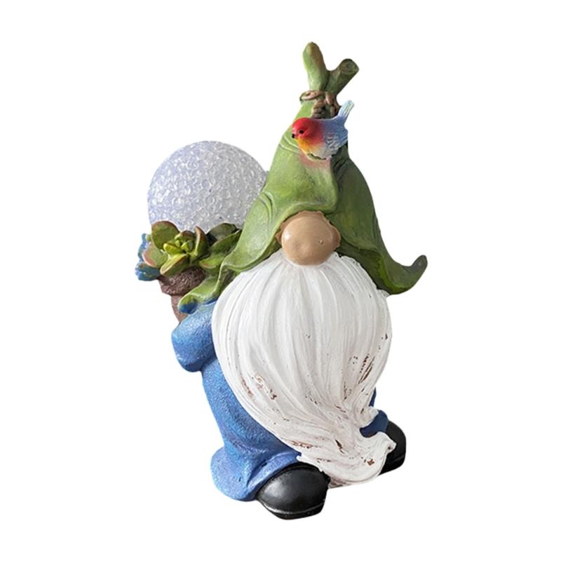 Outdoor Resins Gnomes Statue with LED Lighted Crack Ball Solar Powered Santa Figurine Ornament for Garden Patios Decors