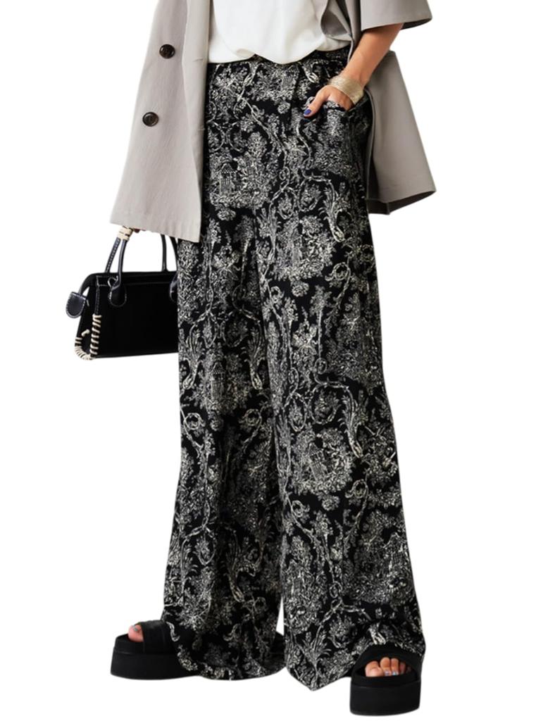 antiqua Toile de Jouy Medium Black Wide-leg Pants, Women's, PO-00194, 05,