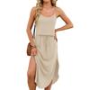 Women's Fashionable Summer Vacation Color Round Neck Sleeveless Suspender Hem Slit Dress — bestel goedkoop online bij Joom webshop