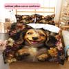Happy Dachshund Pattern Bedding Home Decoration Birthday Gift (1 * duvet cover + 2 * pillowcase, without core)