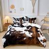 3 Stuks Bruin En Zwart Koeienpatroon Yak Leer Geprint Dekbedovertrek Inbegrepen 1*Dekbedovertrek &2 Kussensloop( Dekbed niet inbegrepen)