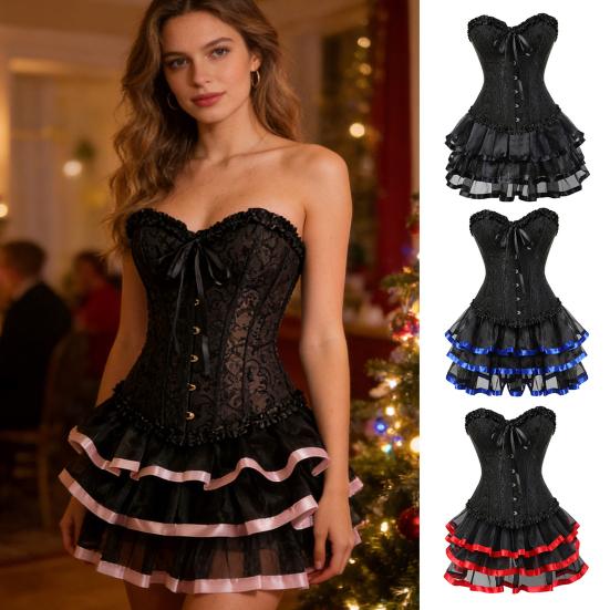 Corset Skirt Set for Women Floral Bustier Corset Top And Tutu Skirt Set Sexy Lace Up Babydoll Costume for Victorian Vintage Style Cosplay Party
