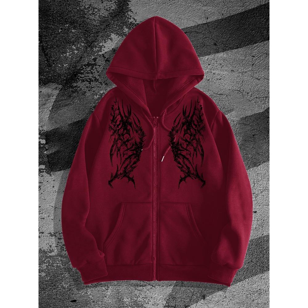 Men'S Gothic Dark Style Print Zip-Up Hoodie, a Fashionable Streetwear Choice Perfect for Casual Occasions, Ideal for Pairing with Trendy Outfits