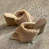 Spice girl millennial stijl pluizige pantoffels zomerkleding pluizige koele pantoffels mooie puntige sleehakken hoge hakken