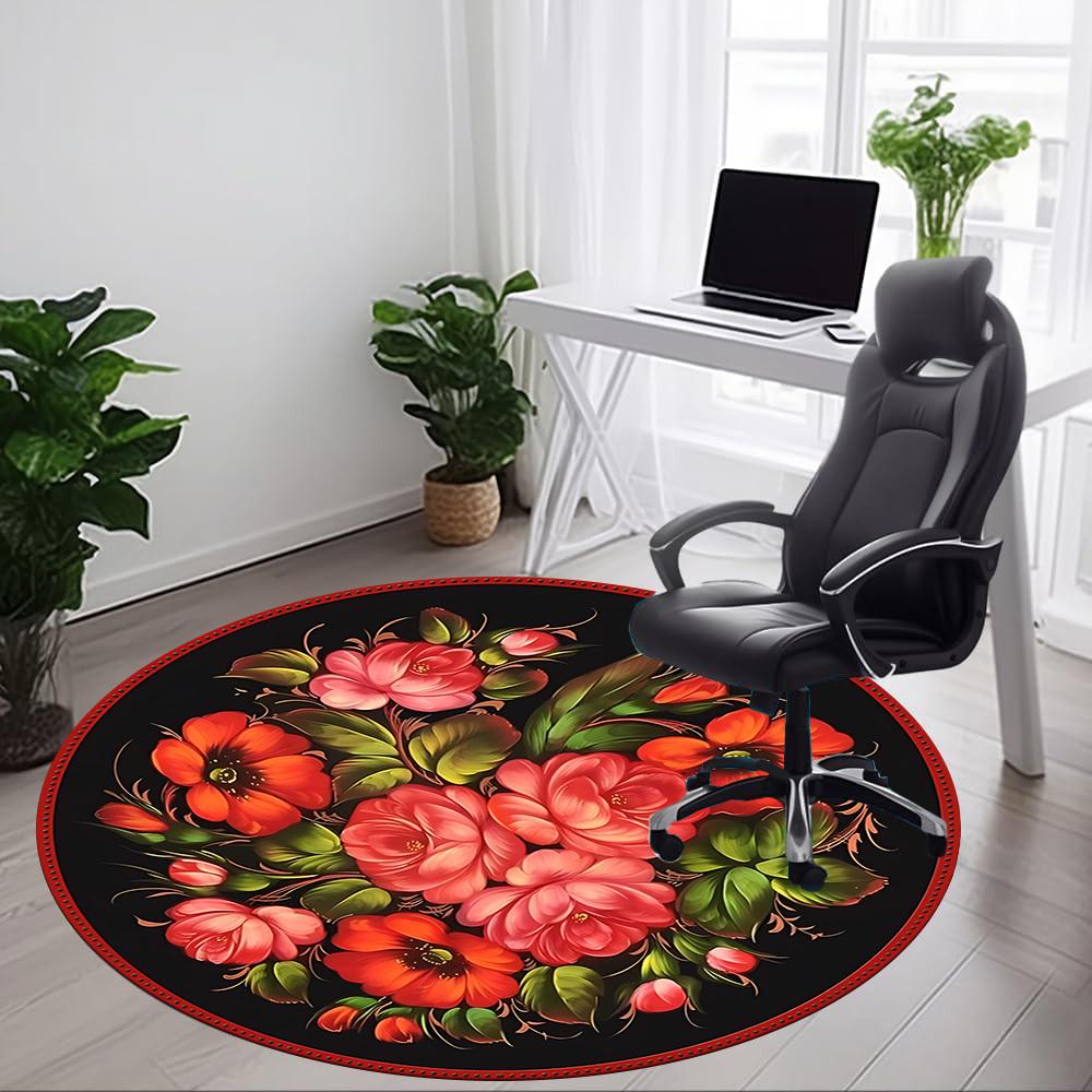 1pc Floral Bouquet Decorative Chair Carpet for Office, Round Non-Slip Durable Large Size Office Carpet, Suitable for Office, Beautiful Decoration