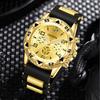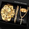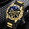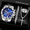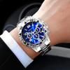 Geneva Blu-ray Glass Men's Watch Steel Belt Quartz Watch Three-eye Business Leisure Watch