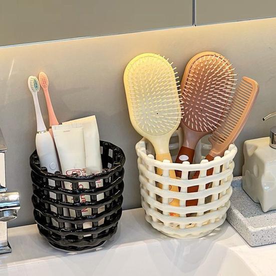 Bathroom Toothbrush Holder Large Capacity Multi-purpose Pen Pot Hollow Hairbrush Comb Makeup Cosmetic Toiletries Organizer Storage Bin — bestel goedkoop online bij Joom webshop