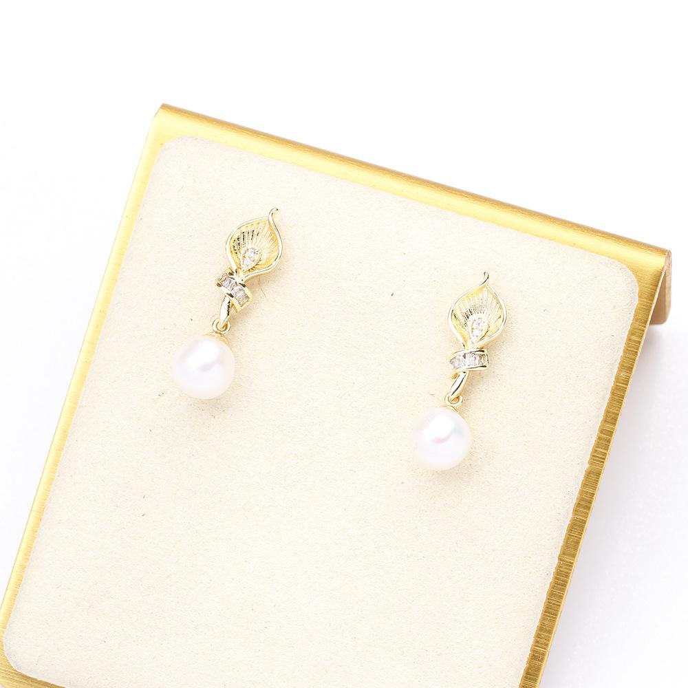 New product temperament: gold-plated diamond-encrusted calla lily flower earrings, simple and versatile, freshwater pearl small earrings, silver needl