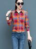 Geruit Overhemd Dames Honderd Dames Tops Los Retro Hong Kong Smaak Lange Mouw Overhemd