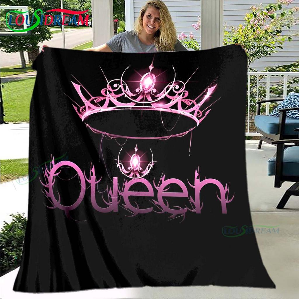 Heet Patroon KONING en KONINGIN Patroon Deken Flanellen Dunne Deken Draagbare Huis Reizen Kantoor Lunchpauze Deken Verjaardagscadeau