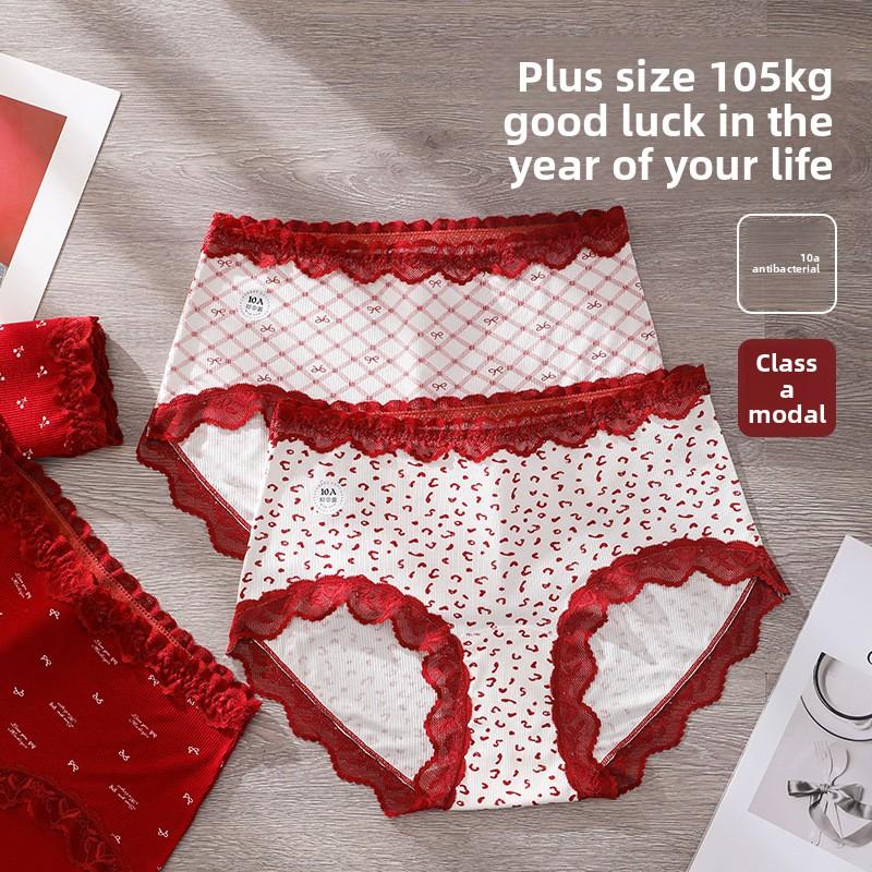 Big Size Female Spring Summer Marriage This Year Red Lace 10a Antibacterial Extended Crotch Triangle Briefs