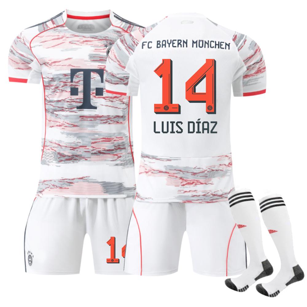 Tieners Kinderen Volwassenen Gepersonaliseerde Naam Voetbaltenues 2025-26 Bayern Uit #14 LUIS DÍAZ Trainingsshirt Set met Sokken