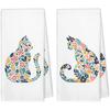 Flower Cat Kitchen Towels Set of 2, Floral Cats Mom Towels for Cat Lovers Women Girls Dish Hand Tea Towel, Cute Light Blue and White Chinoiserie