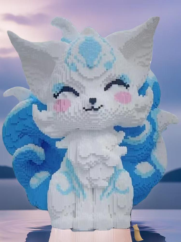 Non-Toxic 5760-Piece Blue Nine-Tailed Fox Building Blocks Diy Creative Toy Office Home Decor 14+