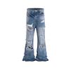 JYL Men's Flare Jeans European High-Street Ripped Washed Slim Straight Cleanfit Denim