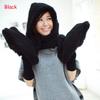Cute Long Warm Plush Velvet 3 In 1 Hooded Scarf Pocket Gloves Hats