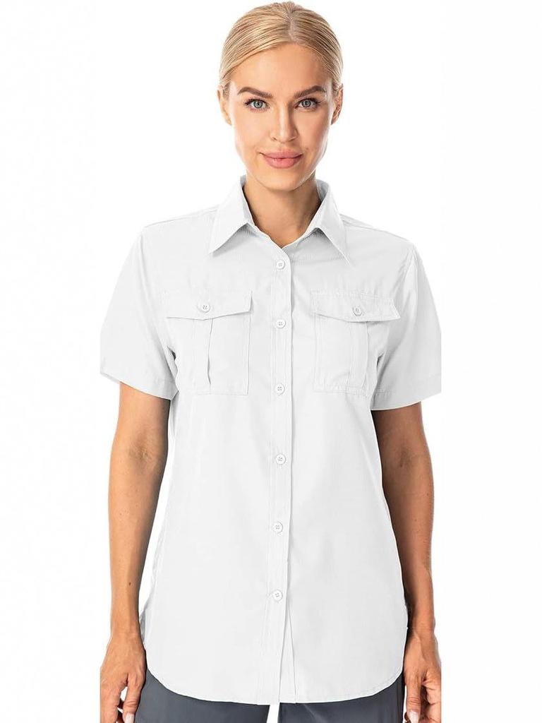 Dames 2026 Sneldrogend Kortmouwig Shirt - Effen Kleur, Borstzak met Klep, Ademend, Casual Outdoor Europees & Amerikaans Zomerstijl