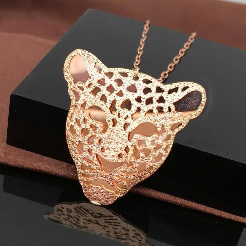 Exquisite Rose-Plated Hollow Big Leopard Head Pendant Russian Purple Gold Women'S Luxury Personalized 585 Colored Gold Necklace