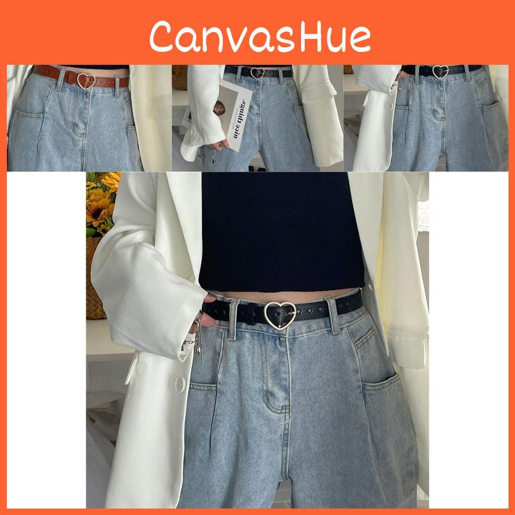 Chic Heart Hole Belt For Students Versatile Pu Material Adjustable Stylish Design