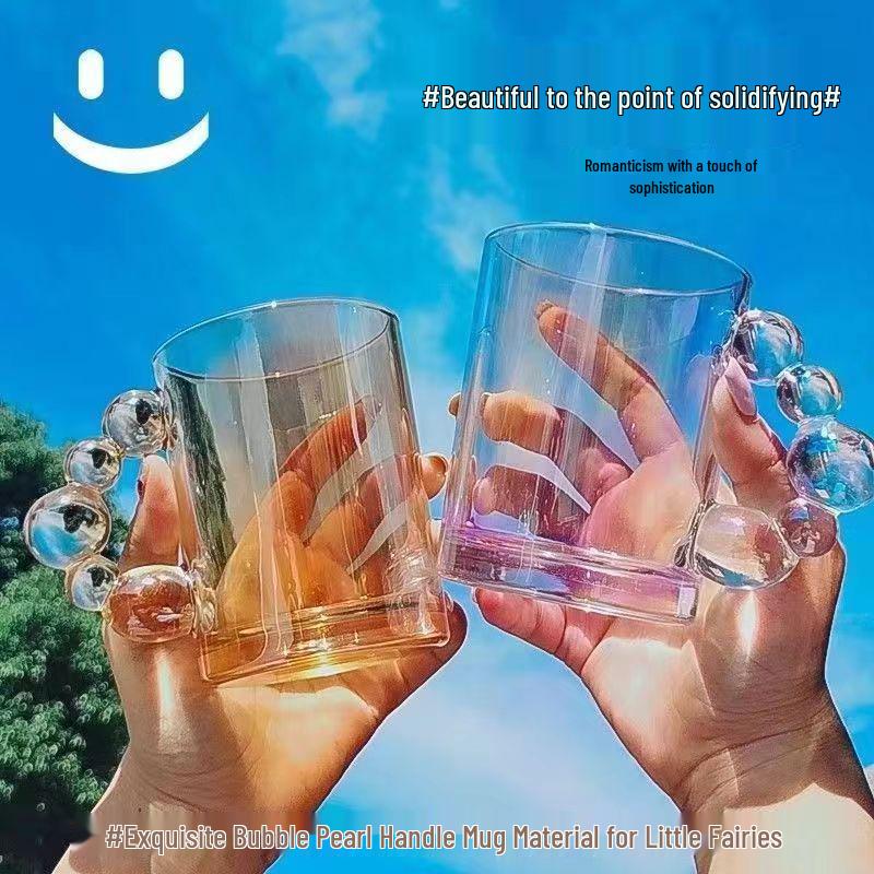 Wanghong Bubble Glass Cup with Pearl Handle - Multipurpose for Water, Milk, Coffee, Beer, or Beverages